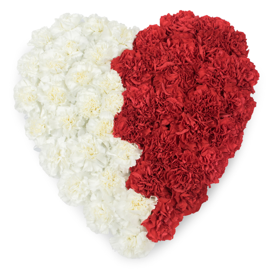 Choose our Heart-Shaped Red & White Carnation Bouquet for a thoughtful and luxurious sympathy gift. Perfect for expressing your sincere condolences.