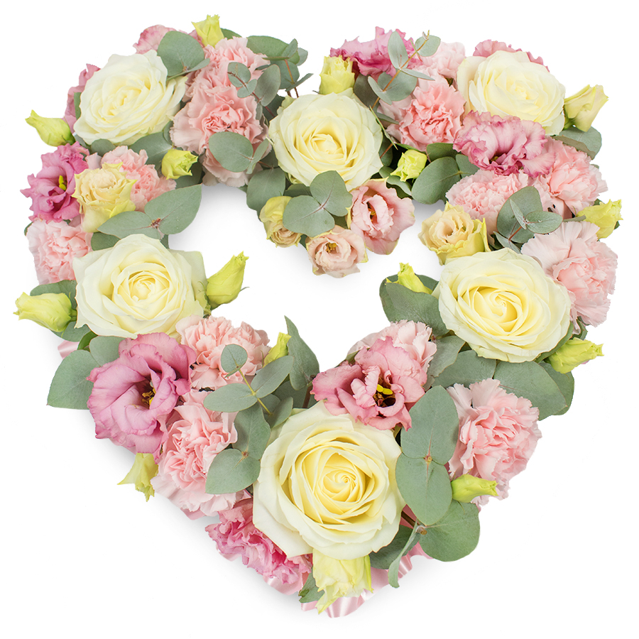 Express your heartfelt emotions with our beautiful tribute bouquet, thoughtfully arranged to honor and remember loved ones. This stunning arrangement features a harmonious blend of white roses, pink carnations, pink lisianthus, and eucalyptus, creating a unique and captivating display.